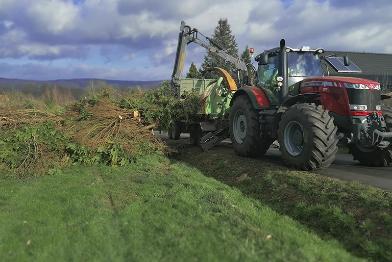 Zudem bieten wir Ihnen auch unseren Häckseldienst an. Dies bedeutet, dass das anfallende Material direkt bei Ihnen vor Ort zu kleinen Hackschnitzeln gehäckselt werden kann.